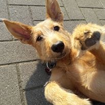 Nun ist es wieder chillig, Drömel folgsam, brav und mobbt Socke nicht mehr. Nun trainieren wir mit Ihr und ihrem Partner, dass wir Goofy etwas die Angst vor fremden Menschen, insbesondere Männer, nehmen können.