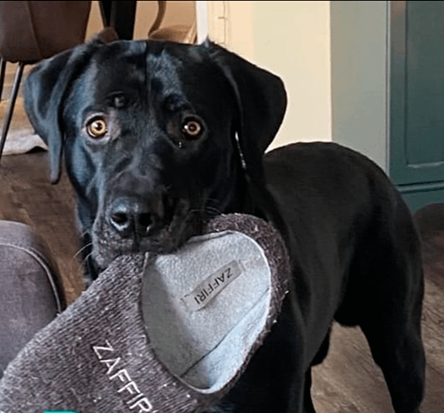Dann kamen die Welpen Drömel und Socke und die Ruhe hatte ein Ende. Soweit so gut. Üblicher Kinderkram, angefressene Schuhe, Möbel und Sofakissen, nix von Belang.